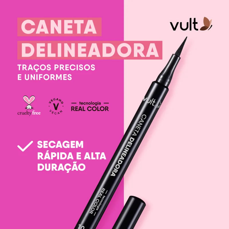 A linha de canetas delineadoras da Vult foi desenvolvida para proporcionar precisão e intensidade. Com fórmulas de alta durabilidade e aplicadores ergonômicos, essas canetas facilitam a criação de looks variados e garantem um acabamento impecável.