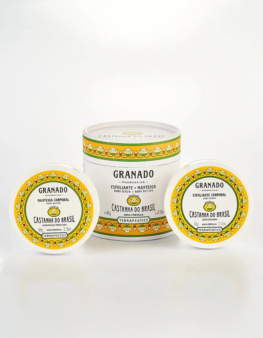 Cuidado e hidratação intensa com o Kit Granado Castanha do Brasil: Esfoliante e Manteiga Corporal – 60g + 60g