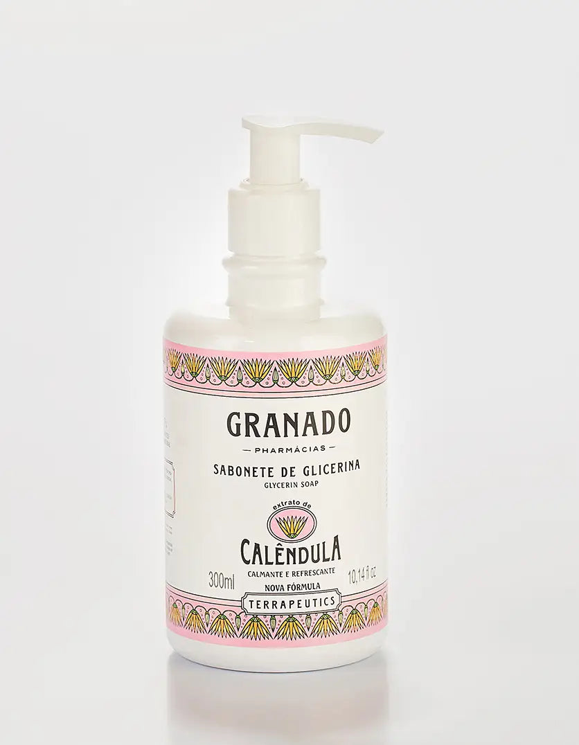 Formulado com pH da pele, glicerina vegetal e alta concentração de extrato natural de calêndula, que acalma a pele. Limpa suavemente a pele, deixando-a macia e perfumada. Fórmula biodegradável. Livre de parabenos e ingredientes de origem animal.