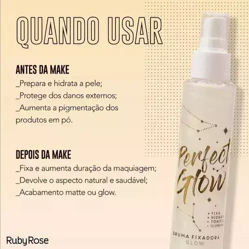 A Bruma Fixadora Glow Basics Ruby Skin Ruby Rose é a escolha perfeita para quem deseja uma maquiagem duradoura e um brilho radiante. Fixe sua maquiagem enquanto adiciona luminosidade à sua pele com um toque de frescor!