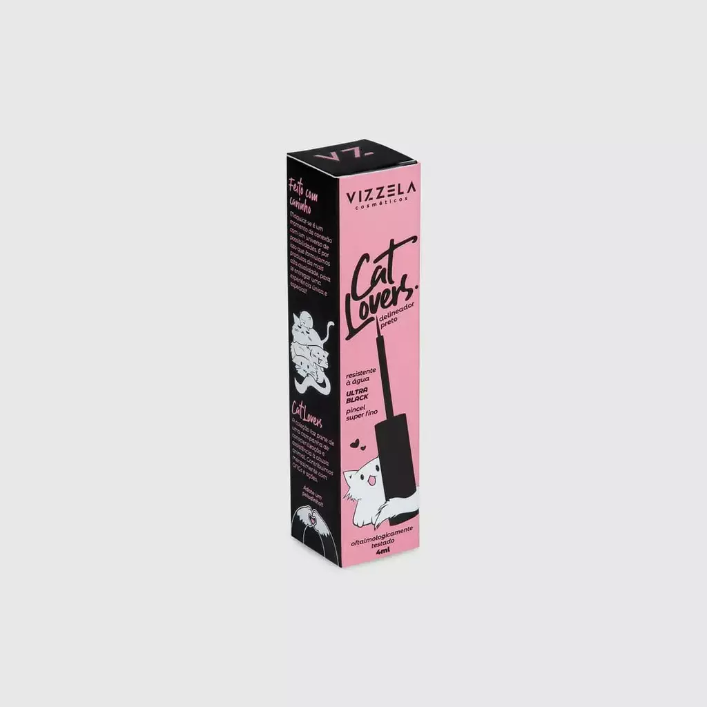 Conquiste um delineado perfeito e marcante com o Delineador Preto Cat Lovers Vizzela! Com alta pigmentação e secagem rápida, ele proporciona um traço preciso e intenso para realçar seu olhar.