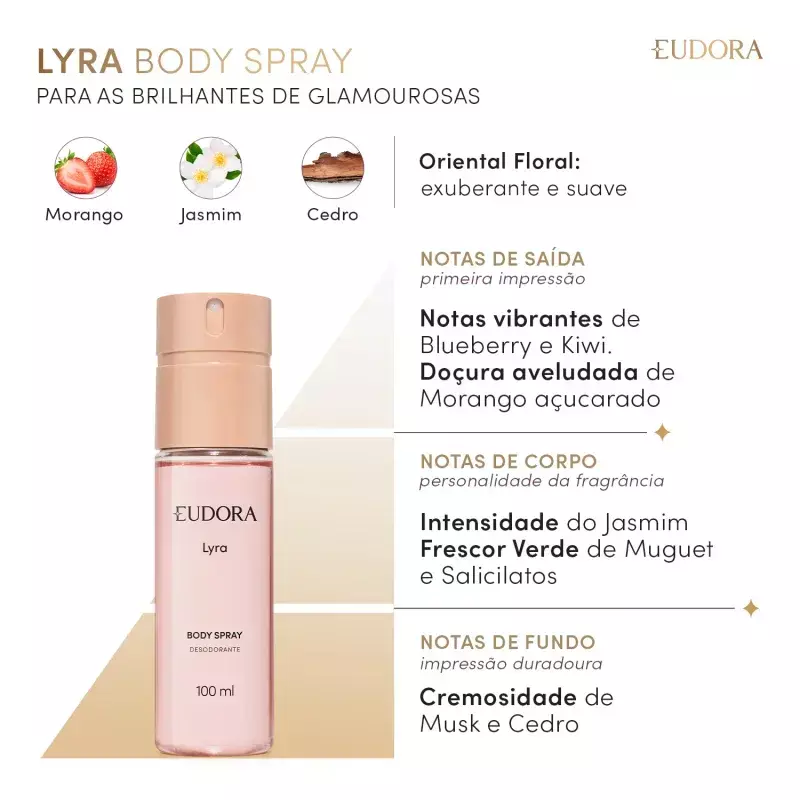 A linha Lyra foi desenvolvida para realçar a personalidade e bem-estar com fragrâncias modernas e performance de longa duração, perfeita para acompanhar sua rotina com confiança e leveza.