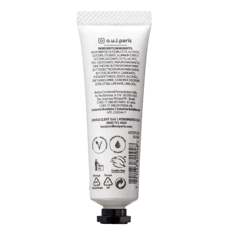 Mãos delicadamente perfumadas e macias com uma fragrância luminosa. Carregue consigo os aromas dos jardins franceses com La Crème Mains Jardin de Grasse O.U.i, que mistura a elegância das Pétalas de Néroli, a radiância da Bergamota, o calor do Âmbar e o toque amadeirado do Sândalo. Um creme hidratante compacto e enriquecido com nutrientes, perfeito para você manter a beleza das suas mãos e unhas.