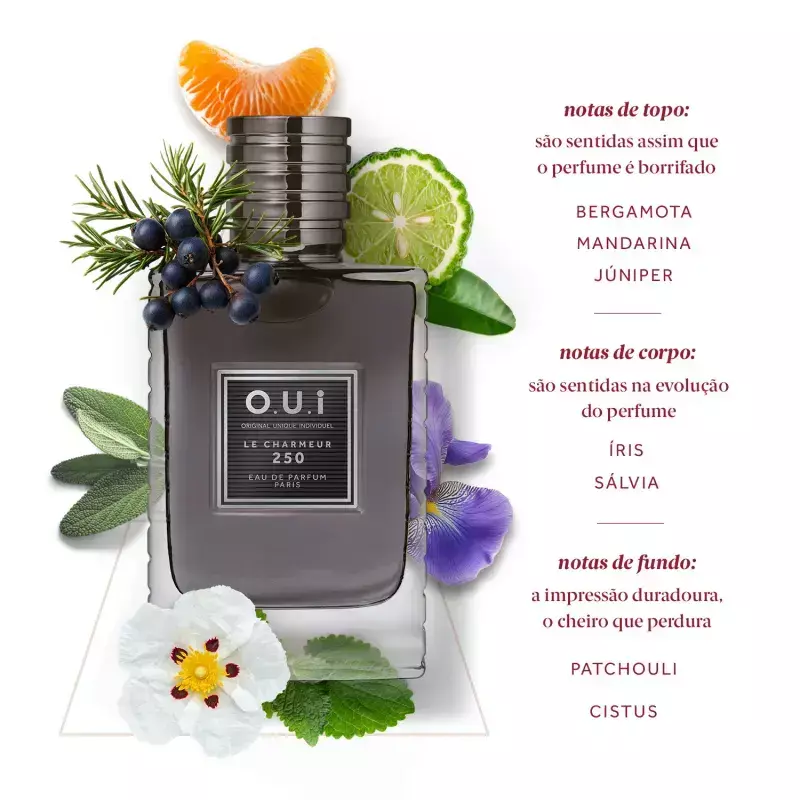 A linha O.U.i Le Charmeur reflete o estilo refinado da perfumaria francesa, combinando alta fixação e fragrâncias sofisticadas que expressam charme e personalidade em cada detalhe.