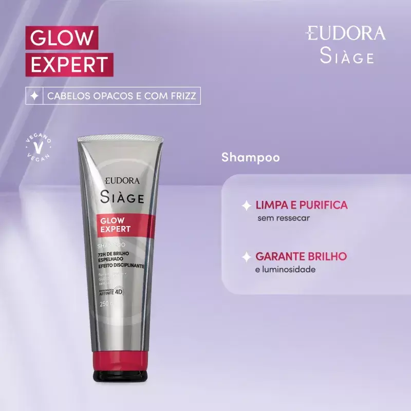 A linha Eudora Siàge Glow Expert foi criada com tecnologia de ponta para proporcionar brilho 2x mais intenso e cabelos com aparência saudável e radiante. Sua combinação de ativos trata profundamente os fios, devolvendo o reflexo natural da luz e promovendo luminosidade duradoura desde a primeira aplicação.